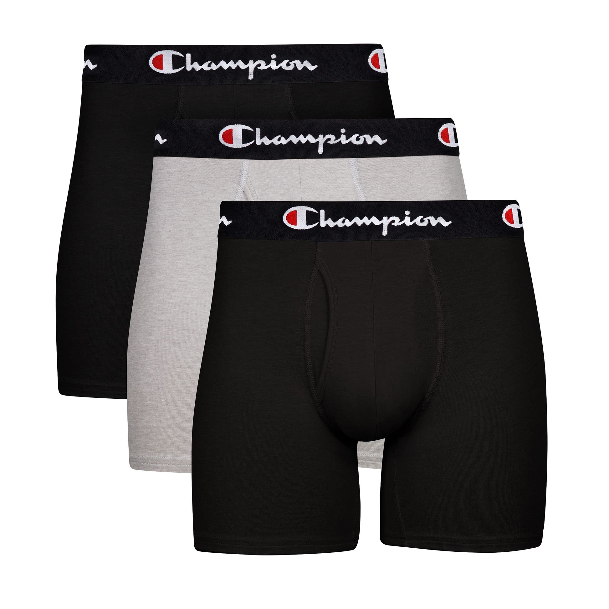 - CLASSIC CHAMPION - Show your Champion pride. These boxer briefs feature a repeating script logo on contrasting waistbands.
