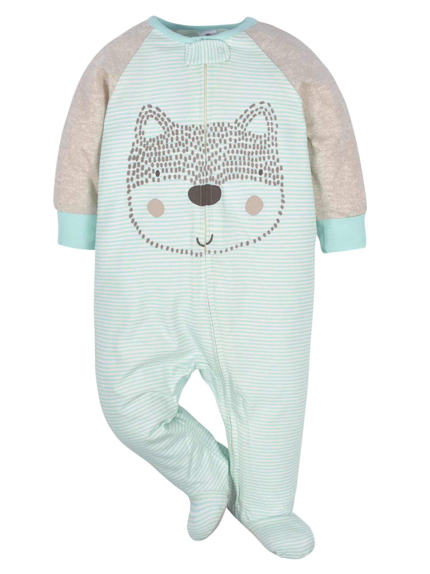 Gerber Sleep ‘n Plays are the ultimate footie pajamas baby is sure to love! These soft footies are made with 100% cotton, a comfortable fabric that’s perfectly breathable to prevent irritation against baby’s delicate skin. They’re appropriate to use as newborn footie pajamas as they’re made to comply with all safe sleep standards. They’re also available in sizes all the way up to 6-9M to fit older or larger babies. Each Gerber Sleep n’ Play features a zipper down the front of the outfit to allow for easy and fast diaper changes. This zipper makes the baby sleeper incredibly easy to put on as well as to take off. Atop the zipper is a safety tab with a snap to keep the zipper held in place. This reduces irritation caused by baby’s chin being poked by the zipper. These baby sleepers are footed to add extra warmth which is wonderful for sleepy time as well as if there is a chill in the air. It also means no fooling around with baby socks! These footie pajamas kids will love to wear to bed because of their supreme comfort as well as cute and fun patterns. Available in assorted colors and patterns, they’re suitable baby girl sleepers as well as baby boy sleepers. Babies love the comfortable feel and parents love how cute they look! But these Sleep n’ Plays aren’t just for sleep! They’re wonderful comforatble, casual outfits to wear during the day. They allow babies mobility and provide warmth. They’re perfect for play but are cute enough to be worn out on the town! These outfits are perfect to wear on a stroll outside, to the grocery store, to day-care, or to grandma and grandpa’s house! The possibilities are endless! The versatility of these outfits truly gives them a spectacular value that all parents will appreciate. They make an excellent gift for any baby boy or baby girl you know and love! Gerber provides high-quality products that are easy and convenient for parents as well as cute and comfortable for baby. Gerber provides safe products that parents can trust.