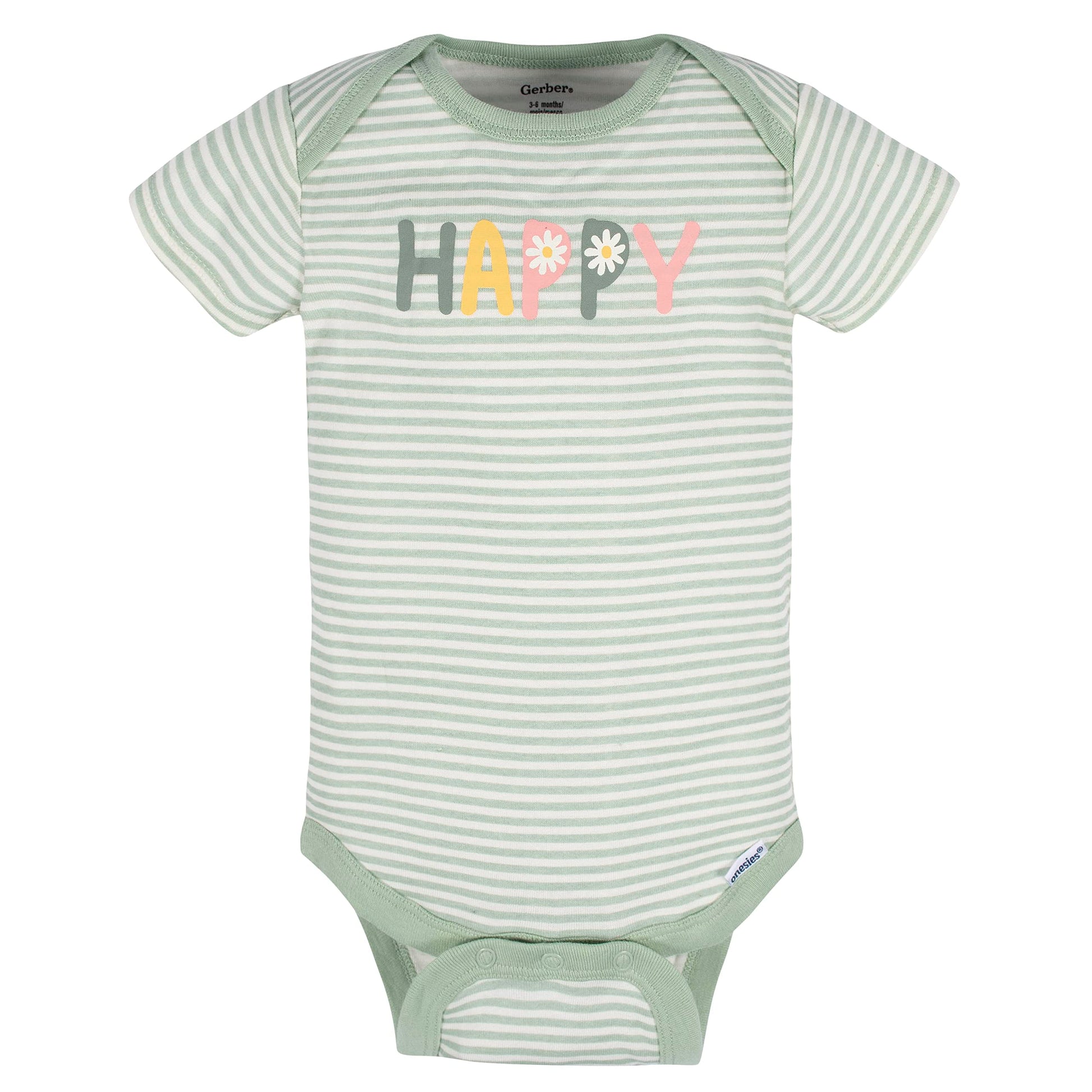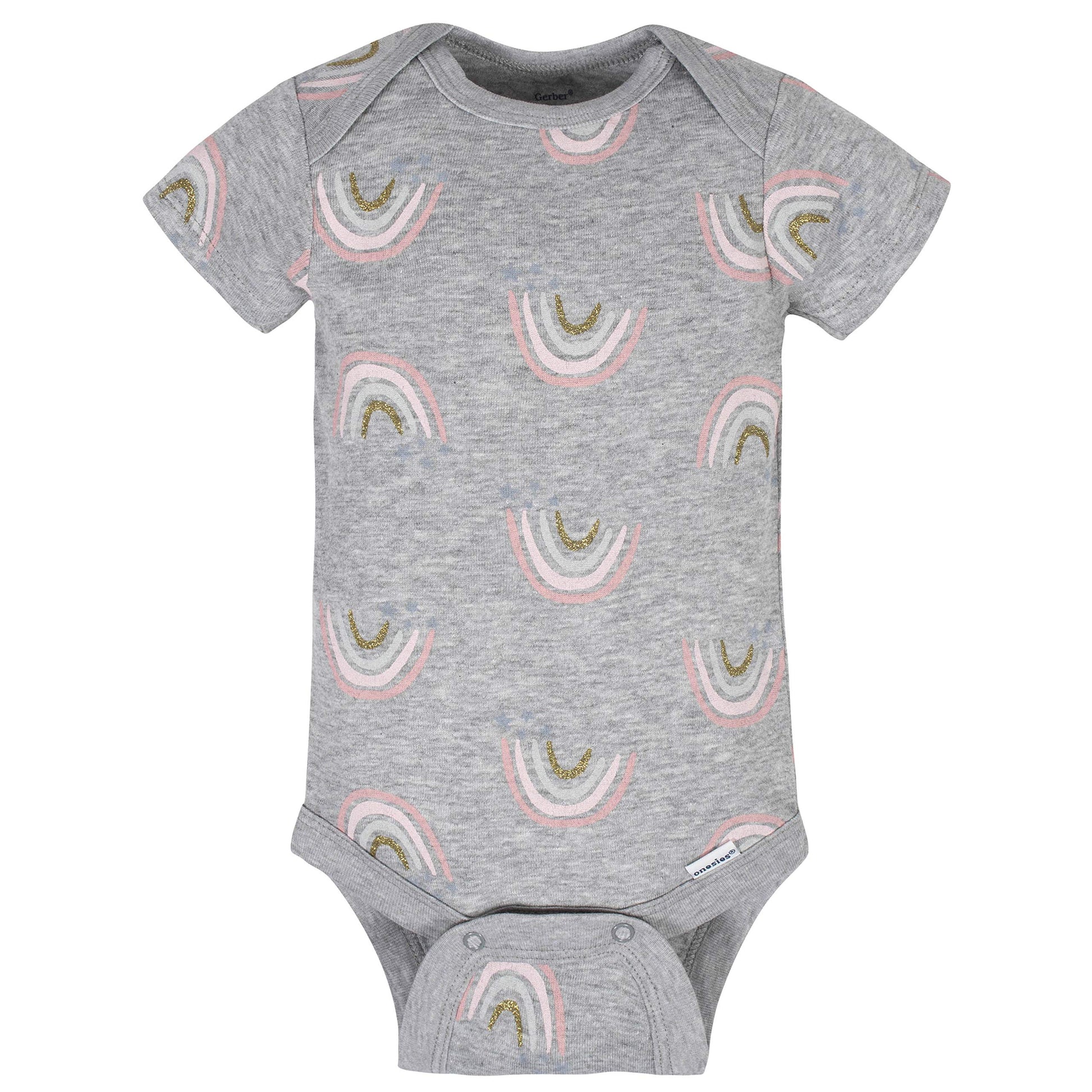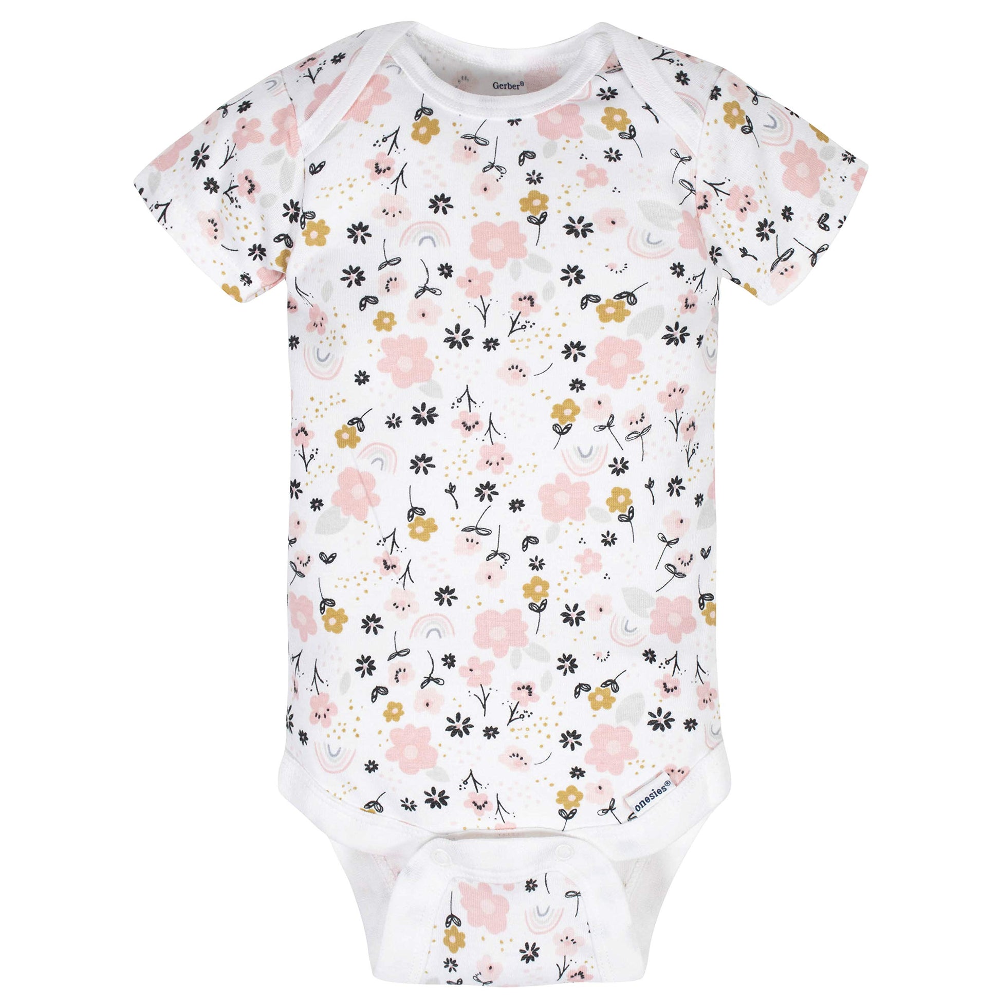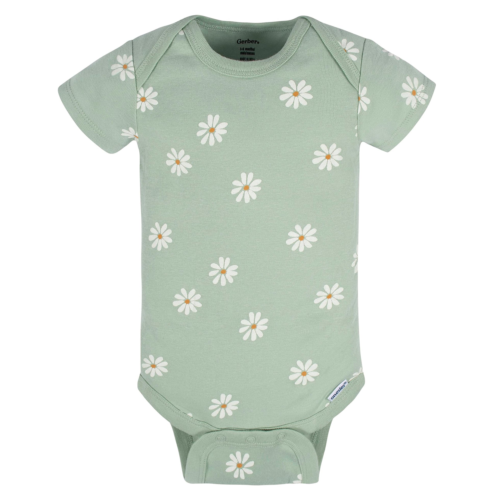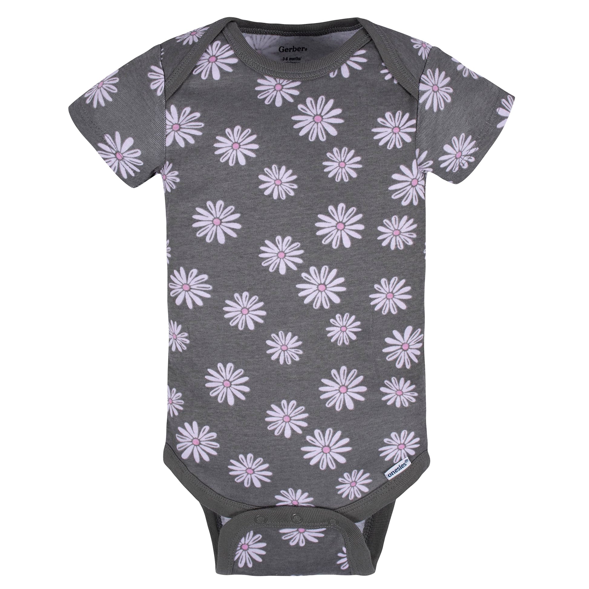 Add an element of fun to each day with this precious assortment of baby girls' short sleeve onesies bodysuits from Gerber! this 8-piece set is the perfect choice for moms who like to mix and match to create the perfect outfit each day. Screen-print and puff print design details are used to create themed artwork that will bring out those adorable smiles. Each bodysuit is made using 100 percent cotton rib for breathability. Time-savers like a bottom snap closure that's higher in the front makes diaper changing more convenient. Easy care fabric care makes them simple to machine wash and dry